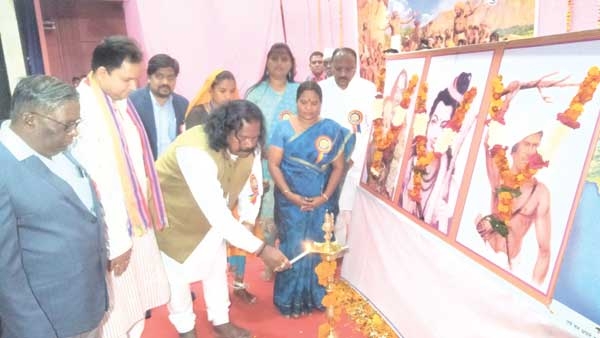 -आदिवासी पारंपारिक संस्कृतीचे नृत्यमय दर्शन घडविणारी शोभायात्रा काढण्यात आली. मान्यवरांसह दिनदयाळ चौकापर्यंत आणि मूळस्थानी परत असा शोभायात्रेचा मार्ग होता.