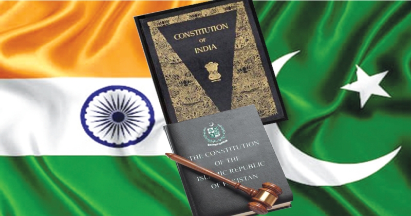 भारताच्या आणि पाकिस्तानच्या राज्यघटनेत काही मूलभूत फरक आहेत. घटनेने भारत ‘धर्मनिरपेक्ष राष्ट्र’ म्हणून अस्तित्वात आले. भारताचा कुठलाही अधिकृत धर्म नाही. पाकिस्तान मात्र ‘इस्लामी प्रजासत्ताक’ म्हणून जन्माला आले. पाकिस्तानी घटनेची सुरुवातच अल्लाच्या नामस्मरणाने होते. इस्लामप्रणित सामाजिक न्यायाच्या संकल्पनेवर आधारलेले लोकशाही राष्ट्र निर्माण करण्याचा संकल्प या राज्यघटनेत आहे. पाकिस्तानच्या राज्यघटनेतील अनुच्छेद दोन, इस्लाम हा पाकिस्तानचा अधिकृत राज्यधर्म असल्याचे घोषित करते.
