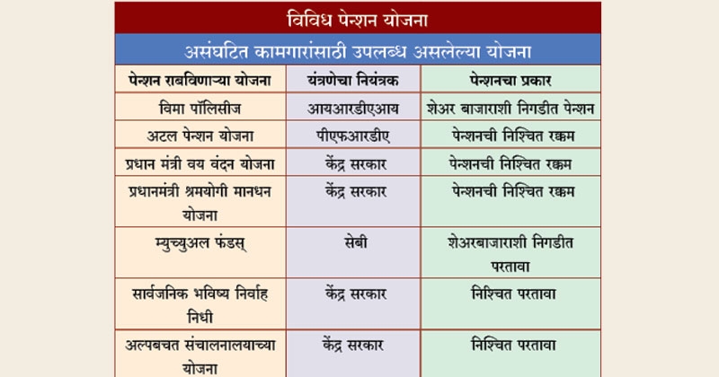 भारतातील असंघटित कामगार एलआयसीच्या जीवन विमा पॉलिसीज उतरवू शकतात. ‘प्रधानमंत्री वयवंदन योजने’त समाविष्ट होवू शकतात तसेच, ‘अटल पेन्शन योजना’ व आता ‘प्रधानमंत्री श्रययोगी मानधन योजना’ अशा या सर्वप्रकारच्या योजनांचा लाभ घेऊन आपले भावी जीवन सुरक्षित करू शकतात. विविध योजनांद्वारे पेन्शनही मिळवू शकतात. याशिवाय असंघटित कामगार त्यांच्याकडून पैसा सार्वजनिक भविष्य निर्वाह निधी (पीपीएफ), म्युच्युअल फंड याशिवाय अल्पबचत संचालनालयाच्या गुंतवणूक योजनांत म्हणजे, ‘राष्ट्रीय बचत प्रमाणपत्रे’, ‘किसान विकास पत्र’ व अन्य अशाच प्रकारच्या योजनांत गुंतवणूक करू शकतात. पण या योजनांतून पेन्शन मिळणार नाही. सेवानिवृत्त जीवनासाठी एकत्रित रक्कम मिळेल. ‘कर्मचारी भविष्यनिर्वाह निधी कायदा १९५२अन्वये कर्मचाऱ्यांच्या पगारातून निर्वाह निधीसाठी ठराविक रक्कम कापली जाती व तितकीच रक्कम मालक आपल्यातर्फे यात घालतो. पण ही योजना फक्त संघटित कामगारांसाठी आहे. त्यामुळे असंघटित क्षेत्रातील कर्मचारी यापासून कायमचे वंचित राहिलेले आहेतही नवी योजना ज्या कामगारांसाठी ‘नॅशनल पेन्शन सिस्टिम’ (एमपीएम) किंवा ‘कर्मचारी पेन्शन योजना’ लागू नाही अशासाठी आहे. तसेच आयकर भरण्यास किंवा आयकर रिटर्न फाईल करणे ज्यांच्यासाठी आवश्यक आहे, अशा व्यक्ती या योजनेत सहभागी होऊ शकणार नाहीत. या योजनेत १८ व्या वर्षी सहभागी झाल्यावर महिन्याला ५५ रुपये या योजनेत भरावे लागणार व केंद्र सरकार त्यांच्यातर्फे तितकीच म्हणजे महिन्याला ५५ रुपये प्रत्येक पेन्शन धारकांच्या खात्यात जमा करणार.