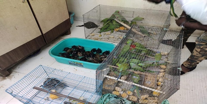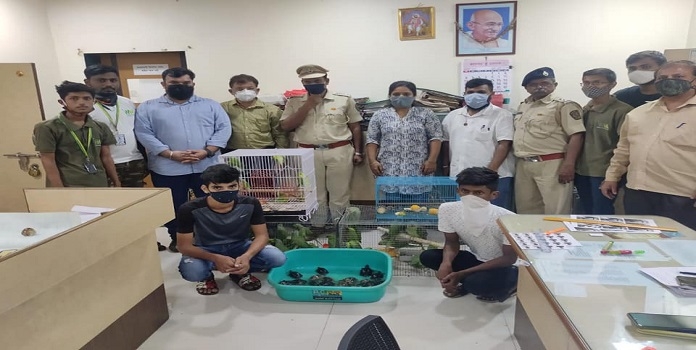मुंबईवरुन काही तरुण ठाण्यातील विवियाना माॅल परिसरात पोपटांची तस्करी करण्यासाठी येणार असल्याची माहिती वन विभागाला मिळाली होती. त्यानुसार आम्ही सापळा रचून या तरुणांना अटक केली. त्यांच्याकडून काही पोपट आम्ही ताब्यात घेतल्यानंतर अधिक चौकशीतून मुंबईत काही वन्यजीव असल्याची माहिती त्यांनी दिल्याचे, ठाण्याचे वनपरिक्षेत्र अधिकारी नरेंद्र मुठे यांनी सांगितले. त्यानुसार मुंबईत येथे मारलेल्या धाडीत एका घरातून काही वन्यजीव ताब्यात घेतल्याची माहिती त्यांनी दिली.वन विभागाच्या अधिकाऱ्यांना लालबाग येथील एका घरातून खार, पोपट आणि कासव मिळाले. या कारवाईतून ३ प्रजातींचे एकूण ३८ पोपट, १६ इंडियन टॅन्ट टर्टल, २४ इंडियन ब्लॅक स्पाॅटेड टर्टल आणि १० खारी ताब्यात घेण्यात आला. हे जीव वन्यजीव संरक्षण कायद्याअंतर्गत परिशिष्ट १,२,४ मध्ये संरक्षित आहेत. कारवाईत दोन तरुणांना अटक करण्यात आली असून लालबाग येथील तरुण फरार आहे.