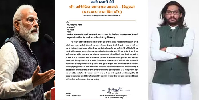 मुंबई : कलर्स मराठीच्या ‘बिग बॉस’मधून प्रसिद्धी झोतात आलेले अभिजीत बिचुकले सतत या ना त्या कारणाने चर्चेत असतात. स्वतःला ‘कवी मनाचे नेते’ म्हणणाऱ्या अभिजीत बिचुकलेंनी थेट पंतप्रधान नरेंद्र मोदींनाच पत्र लिहित सल्ला दिला आहे. सध्या कोरोनामुळे लॉकडाऊन असताना अभिजीत बिचुकलेंनी दिलेले हे सल्ले आणि या पत्रामुळे ते पुन्हा एकदा चर्चेत आले आहेत. अभिजीत बिचुकलेच्या नावाचे हे पत्र सोशल मीडियावर चांगलेच व्हायरल झाले आहे.