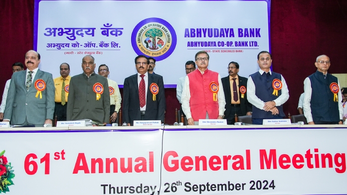 मुंबई : सहकार क्षेत्रात अग्रगण्य असलेली अभ्युदय को-ऑपरेटिव्ह बँक लिमिटेडची वाटचाल उज्ज्वल भविष्याकडे सुरू असून आर्थिक वर्षाअखेरीस सकारात्मक निकाल नोंदविले गेले आहेत, असे बँकेच्या ६१ वी वार्षिक सर्वसाधारण सभा नवी मुंबई, वाशी येथील बँकेच्या सभागृहात पार पडली. सभेचे अध्यक्षपदी प्रशासक सत्य प्रकाश पाठक यांनी भूषविले तसेच रिझर्व्ह बँकेने नियुक्त केलेले सल्लागार, बँकेचे मुख्य कार्यकारी अधिकारी, मुख्य महाव्यवस्थापक आणि बँकेचे वरिष्ठ अधिकारी व्यासपीठावर उपस्थित होते.