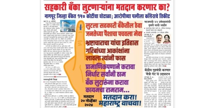 मुंबई : ( Nagpur District Bank Scam Case ) नागपूर जिल्हा मध्यवर्ती सहकारी बँकेत तब्बल १५० कोटींचा घोटाळा करूनही २० वर्षे आरोपी मोकाट होते. सर्वसामान्य नागरिक, गोरगरीब मजूर, शेतकरी आणि कष्टकरी वर्गाच्या घामाचे पैसे लुटून त्यांनी कोट्यवधींची माया जमवली. सत्तापदे उपभोगली. आलिशान बंगले बांधले. महायुती सरकार सत्तेत येताच या भ्रष्टाचार्यांना अद्दल घडली. न्यायालयाने सक्तमजुरीची शिक्षा सुनावल्यानंतर संबंधित आरोपीची आमदारकी रद्द करण्यात आली. पण, काँग्रेसने याच आरोपीच्या पत्नीला विधानसभेच्या मैदानात उतरवले आहे. त्यामुळे या भ्रष्टाचारी प्रवृत्तीला सहकारी बँका लुटणार्यांना मतदान करणार का, याचा विचार मतदारांनी करण्याची वेळ आली आहे.