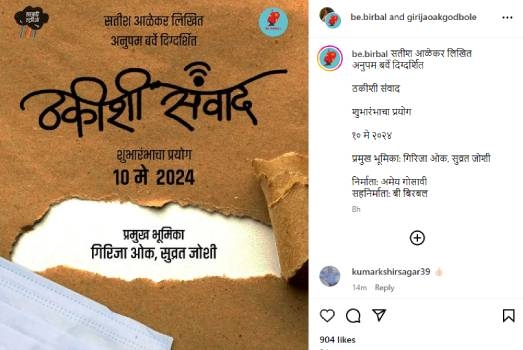 ठकीशी संवाद या नाटकात गिरीजा ओक सोबत अभिनेता सुव्रत जोशी दिसणार आहे. गिरीजाने या नाटकाबद्दलची एक पोस्ट सोशल मिडियावर केली आहे. 'ठकीशी संवाद' या नाटकाचा शुभारंभ १० मे रोजी होणार आहे. सतीश आळेकर लिखित अनुपम बर्वे दिग्दर्शित 'ठकीशी संवाद' हे नाटक नेमकं काय असणार आहे हे जाणून घेण्यासाठी प्रेक्षकांची उत्सुकता नक्कीच वाढली आहे.