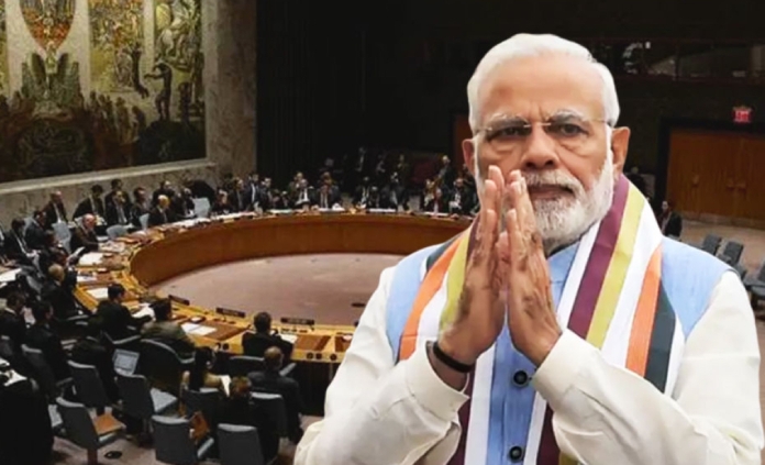 संयुक्त राष्ट्रांच्या सुरक्षा परिषदेत भारताचे कायम सदस्यत्व मिळवण्यासाठी, विद्यमान मोदी सरकार सक्रिय आहे. भारताचा वाढता जागतिक दर्जा ओळखून, पंतप्रधान नरेंद्र मोदी यांनी भारताच्या राजनैतिक प्रभावाचा, आर्थिक सामर्थ्याचा आणि ग्लोबल साऊथचा नेता म्हणून कायमस्वरूपी जागेसाठी भारताला मजबूत दावेदार म्हणून समोर आणले आहे. संयुक्त राष्ट्रांच्या शांतता मोहिमांमध्ये, भारताचे महत्त्वपूर्ण योगदान आणि जागतिक शांतता आणि सुरक्षेसाठीची वचनबद्धता सरकारने सातत्याने अधोरेखित केली आहे.