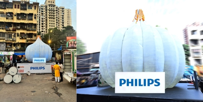 मुंबई : मुंबईतील लालबाग परिसरात इलेक्ट्रॉनिक्स क्षेत्रातील कंपनी 'फिलिप्स'कडून सर्वात मोठ्या रोषणाईद्वारे मोदकाची प्रतिकृती साकारण्यात आली आहे. 'फिलिप्स' कंपनीकडून गणरायाचे स्वागत करण्यात आले असून यंदा गणेशोत्सवात नवा अंदाज समोर आणला आहे. कंपनीकडून साकारण्यात १६ फूटी रोषणाई मोदकाने भाविकांचे लक्ष वेधून घेतले आहे.