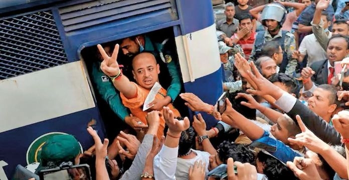 दरम्यान, राष्ट्रध्वजाचा अपमान केल्याच्या आरोपात चिन्मय कृष्ण दास यांना ढाका उच्च न्यायालयाने जामीन मंजूर केला होता, मात्र बांगलादेश सर्वोच्च न्यायालयाने ३० एप्रिल रोजी या निर्णयाला स्थगिती दिली. चिन्मय दास गेल्या पाच महिन्यांपासून खोट्या देशद्रोहाच्या आरोपाखाली तुरुंगात आहेत. त्यांचे वकील अपूर्व कुमार भट्टाचार्य यांनी २३ एप्रिल रोजी जामिनासाठी अर्ज केला होता. मात्र, त्यांना २५ नोव्हेंबर रोजी ढाक्याच्या हजरत शाहजलाल आंतरराष्ट्रीय विमानतळावर अटक करण्यात आली होती. या प्रकरणाशी संबंधित इतर तीन अर्जांवर मंगळवारी सुनावणी होणार आहे.