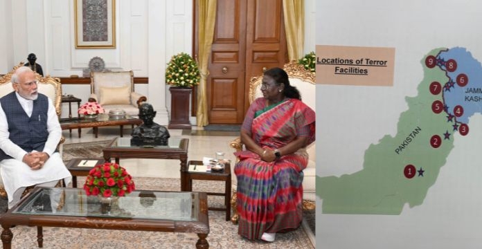 पंतप्रधान नरेंद्र मोदी यांनी बुधवारी राष्ट्रपती द्रौपदी मुर्मू यांची भेट घेतली आणि त्यांना ‘ऑपरेशन सिंदूर’ची माहिती दिली, ज्यामध्ये भारतीय सशस्त्र दलांनी पहलगाम दहशतवादी हल्ल्याला प्रत्युत्तर म्हणून पाकिस्तान आणि पाकव्याप्त जम्मू आणि काश्मीरमधील दहशतवादी तळांवर अचूक हल्ले केले