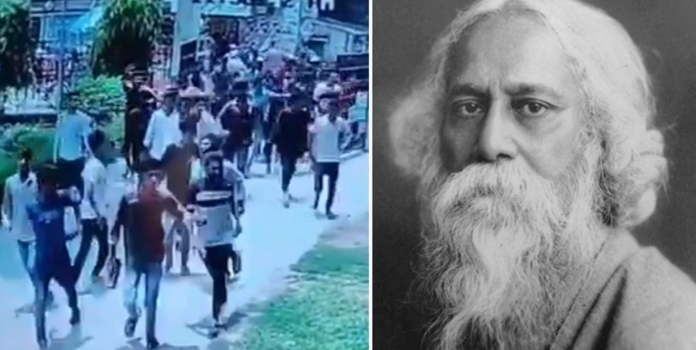 ढाका : (rabindranath tagore bangladesh house) भारत व बांगलादेशच्या राष्ट्रगीताचे निर्माते नोबेल पुरस्कार विजेते रवींद्रनाथ टागोर यांच्या बांगलादेशातील घरावर इस्लामिक कट्टरपंथींनी हल्ला केल्याचे समोर आले आहे. बांगलादेशच्या सिराजगंज जिल्ह्यातील शहजादपूर भागात असलेल्या टागोर यांच्या कचरीबाडी या वडिलोपार्जीत घराची जमावाने तोडफोड केली. खिडक्यांच्या काचा फोडल्या, दरवाजे आणि फर्निचरचे मोठे नुकसान केले. सदर घटनेनंतर पुरातत्व विभागाच्या अधिकाऱ्यांनी ती जागा बंद केली असून प्रकरणाची चौकशी करण्यासाठी एक समिती स्थापन केली आहे.