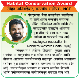 यंदा 11 श्रेणींमध्ये 15 व्यक्ती आणि संस्थांना ‘स्पिसीज अॅण्ड हॅबीटॅट्स वॉरियर्स अॅवॉर्ड - 2025’ जाहीर झाला आहे. या पुरस्काराचे स्वरुप सन्मानचिन्ह आणि 51 हजार ते 75 हजार रुपयांपर्यंत सहयोग निधी असे आहे. पुरस्कारार्थींचा कामाचा प्रवास हा भविष्यातही सुरू राहावा, म्हणून त्यांना भरभक्कम असा सहयोग निधी या पुरस्काराच्या माध्यमातून देण्यात येतो.