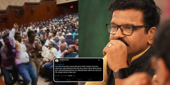 पुणे : (Hrishikesh Joshi Post) पुण्यातील यशवंतराव चव्हाण नाट्यगृहात १२ जुलै रोजी स्वातंत्र्यवीर विनायक दामोदर सावरकर लिखित 'संगीत संन्यस्त खड्ग' या नाटकाचा प्रयोग आयोजित करण्यात आला होता. संध्याकाळी साडेसहा वाजता नाटकाला सुरुवात झाली, पण रात्री साडेआठच्या सुमारास वंचित बहुजन आघाडीच्या कार्यकर्त्यांनी नाट्यगृहात गोंधळ घालायला सुरुवात केली, त्यामुळे काही काळ तणावाचे वातावरण निर्माण झाले होते. दरम्यान, पुण्यात हे नाटक बंद पाडले गेले, अशा बातम्या माध्यमांमध्ये आल्या होत्या. त्याबाबत अभिनेते आणि नाटकाचे दिग्दर्शक हृषिकेश जोशी यांनी सविस्तर पोस्ट लिहीत स्पष्टीकरण दिले आहे.