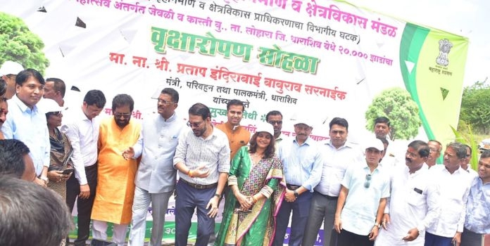 मुंबई : महाराष्ट्र गृहनिर्माण व क्षेत्र विकास प्राधिकरणाचा (म्हाडा) विभागीय घटक छत्रपती संभाजीनगर गृहनिर्माण व क्षेत्र विकास मंडळातर्फे वन महोत्सव अंतर्गत धाराशिव जिल्ह्यातील जेवळी (ता. लोहारा) व कास्ती बुद्रुक येथे २० हजार वृक्ष लागवडीचा शुभारंभ पालकमंत्री तथा परिवहन मंत्री श्री. प्रताप सरनाईक यांच्या हस्ते आज मोठ्या उत्साहात करण्यात आला.