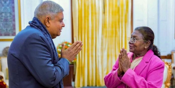 नवी दिल्ली : भारताचे उपराष्ट्रपती व राज्यसभेचे सभापती जगदीप धनखड यांनी दिलेला राजीनामा राष्ट्रपती द्रौपदी मुर्मू यांनी मंगळवारी स्वीकारल्याची घोषणा राज्यसभेत करण्यात आली. दरम्यान, राज्यसभेचे उपसभापती हरिवंश यांनी राष्ट्रपती द्रौपदी मुर्मू यांची सदिच्छा भेट घेतली.
