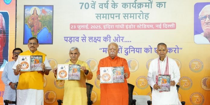 नवी दिल्ली : भारतीय मजदूर संघाचा (बीएमएस) ७० वा वर्धापन दिन केवळ औपचारिकता नसून, तो आत्मपरीक्षणाचा आणि पुढच्या वाटचालीचा संकल्प करण्याचा क्षण आहे, असे प्रतिपादन राष्ट्रीय स्वयंसेवक संघाचे (रा. स्व. संघ) सरसंघचालक डॉ. मोहनजी भागवत यांनी केले. भारतीय मजदूर संघाच्या ७० व्या स्थापना दिनानिमित्त आयोजित समारोप कार्यक्रमात ते बोलत होते.