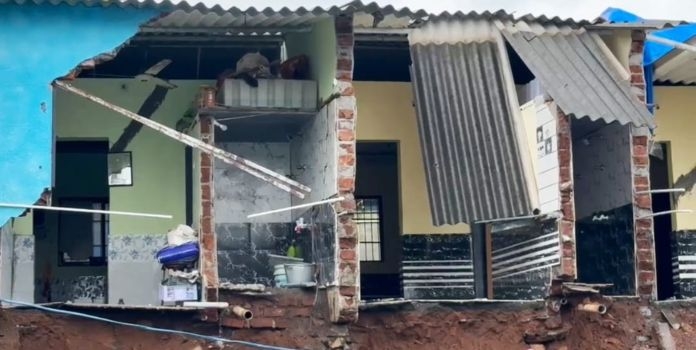 सहा घरांची भिंत कोसळली. स्थानिक नागरीकांना घटनेची माहिती मिळताच स्वत: घरे जमीनदोस्त करण्यास सुरुवात केली आहे. आजूबाजूच्या रहिवासियांना सुरक्षित ठिकाणी हलविण्यात आले आहे. गेल्या दोन दिवसांपासून सतत पडणाऱ्या पावसामुळे माती खचल्याने ही घटना घडली आहे.