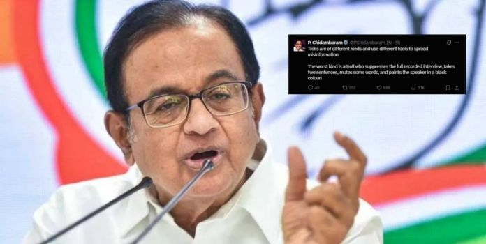 दरम्यान, पी चिदंबरम यांनी एक्स अकांऊटवर एक पोस्ट शेअर केली आहे. ते म्हणाले की, "ट्रोलिंग वेगवेगळ्या प्रकारचे असते आणि चुकीची माहिती पसरवण्यासाठी वेगवेगळ्या साधनांचा वापर करण्यात येतो. यापैकी सगळ्यात वाईट प्रकार म्हणजे ज्या ट्रोलिंग मध्ये संपूर्ण मुलाखत वगळून त्यातील दोन वाक्यं घ्यायची, काही शब्द म्यूट करायचे आणि वक्त्याच्या प्रतिमेस काळे रंग द्यायचे. संपूर्ण मुलाखत क्विंटवर उपलब्ध आहे. मुलाखतीत अनेक प्रश्न विचारले आहेत. लोकसभा आणि राज्यसभेतील चर्चेदरम्यान इंडी ब्लॉक हे आणि असे बरेच प्रश्न उपस्थित करेल."