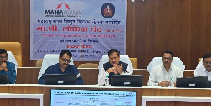 जळगाव : वीज वितरण यंत्रणेच्या विस्तारीकरण व सक्षमीकरणाची कामे वेगाने सुरू आहेत. त्यामुळे नवीन वीजजोडणीसह सर्व ग्राहकांना सुरळीत व दर्जेदार वीजपुरवठा देण्यास प्राधान्य द्यावे. सेवेच्या कृती मानकांनुसार निश्चित केलेल्या कालावधीतच सेवा द्यावी. तसेच वीजहानी कमी करून वीजबिलांच्या वसुलीला आणखी वेग द्यावा असे निर्देश महावितरणचे अध्यक्ष व व्यवस्थापकीय संचालक लोकेश चंद्र यांनी मंगळवारी (दि. २९) कोकण प्रादेशिक विभागाच्या आढावा बैठकीत दिले.