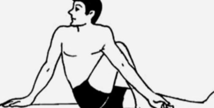 4. वक्रासन-(1/2 स्थिती) वरील पाय पसरून बसलेल्या स्थितीतून डावं पाऊल उजव्या गुडघ्याजवळ ठेवा. डावा हात शरीराच्या मागे पाठीच्या कण्याच्या सरळ रेषेत ठेवा. उजवे कोपर डाव्या गुडघ्यात अडकावून उजव्या हाताने डावा घोटा धरा. शरीर तीन ठिकाणी, कंबर छाती व मान, डावीकडून मागे फिरवा, ताण अनुभवून समोर या व परत तीन वेळा फिरवा. अशीच कृती उजवीकडे करा.