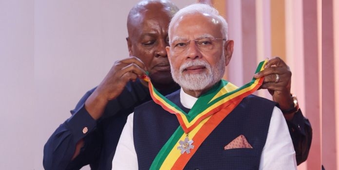 ‘द ऑफिसर ऑफ द ऑर्डर ऑफ द स्टार ऑफ घाना’ या पुरस्काराने सन्मानित झाल्यानंतर पंतप्रधान नरेंद्र मोदींनी त्यांच्या अधिकृत एक्स हँडलवर यासंदर्भात सविस्तर पोस्ट केली आहे. ते म्हणाले, "हा पुरस्कार मला बहाल केल्याबद्दल मी घानाच्या जनतेचे व सरकारचे आभार मानतो. हा पुरस्कार मी दोन्ही देशांच्या तरुणाईच्या भवितव्याला, त्यांच्या महत्त्वाकांक्षांना, आपल्या समृद्ध सांस्कृतिक वैविध्याला आणि दोन्ही देशांमधील ऐतिहासिक संबंधांना अर्पण करतो. हा पुरस्कार ही एक जबाबदारीदेखील आहे. दोन्ही देशांमधील घट्ट मैत्री अधिकाधिक वृद्धिंगत करण्याची ही जबाबदारी आहे. भारत नेहमीच घानासोबत उभा राहील आणि एक मित्र आणि विकासातील भागीदार म्हणून नेहमीच घानाला मदत करत राहील", असे पंतप्रधान नरेंद्र मोदींनी घानाच्या सरकारला आश्वासन दिले आहे.