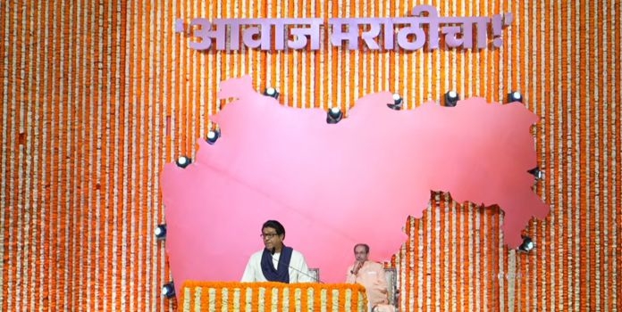 मनसे अध्यक्ष राज ठाकरे आणि उद्धव ठाकरे जवळपास वीस वर्षांनी एकाच मंचावर उपस्थित राहिले. यावेळी मराठीचा मुद्दा आणि त्रिभाषा सुत्राच्या मुद्द्यावरुन त्यांनी राज्य सरकारच्या धोरणांवर टीका केली. महाराष्ट्रात राहून मराठी बोलायचा असा अट्टहास धरला, त्यातून वाद झाला आणि त्याला कानशीलात लगावली, यात मराठी-गुजराती हा मुद्दा येतो कुठून?, असा प्रश्न त्यांनी उपस्थित केला आहे. पुन्हा असं काही दिसेल तेव्हा व्हिडिओ काढू नका, अशी सूचना राज ठाकरेंनीही दिली आहे.
