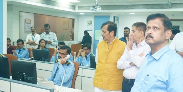 मुंबई : सततच्या मुसळधार पावसामुळे मुंबईतील जनजीवन विस्कळीत झाले असून या पार्श्वभूमीवर मुंबई उपनगरचे सह पालकमंत्री मंगलप्रभात लोढा यांनी मंगळवार, १९ ऑगस्ट रोजी मुंबई महापालिकेच्या आपत्ती व्यवस्थापन विभागाला भेट देत परिस्थितीचा आढावा घेतला.