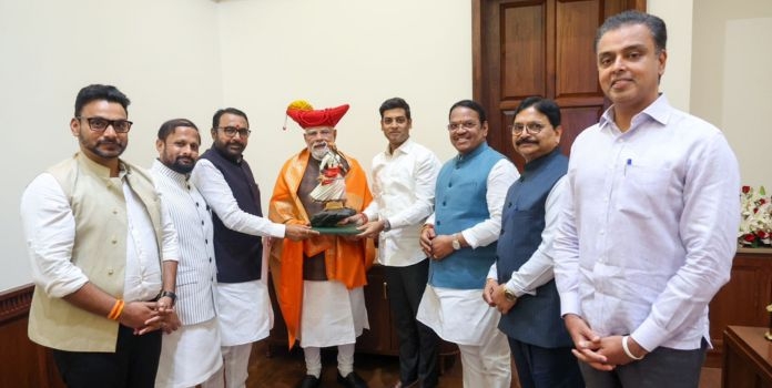 पंतप्रधान नरेंद्र मोदी यांचा शिवसेनेच्या खासदारांनी केला मराठमोळा सन्मान