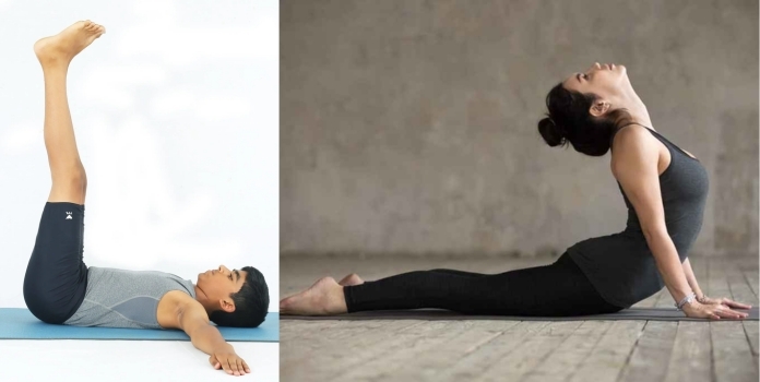 (२) विपरित-करणी : कृती : चित्रात दाखविल्याप्रमाणे पाय आणखी थोडे मागे घेऊ शकता. पायांचे अंगठे डोळ्यांसमोर आले की डोळे बंद करून जिभेचे टोक टाळूला लावून घशातील ग्रंथींना मनाने उपचार करा, या सूचना देत स्वस्थ, सुदृढ, ताणविरहित. रक्त खांद्यांपर्यंत आलं की हळूहळू हातांच्या आधारे खाली या व शवासनाची स्थिती घ्या.