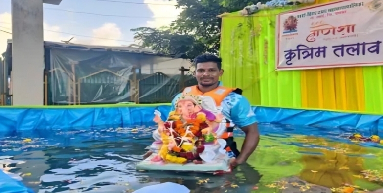 वसई-विरार : वसई विरार महानगरपालिका क्षेत्रात पाच दिवसांच्या गणपतींचे विसर्जन रविवारी (दि. ३१ ऑगस्ट) मोठ्या भक्तिभावाने आणि उत्साहात पार पडले. एकूण ८२९३ गणेशमूर्तींपैकी ६७२३ म्हणजेच तब्बल ८१ टक्के मूर्तींचे विसर्जन हे महानगरपालिकेने उभारलेल्या कृत्रिम तलावांमध्ये करण्यात आले.